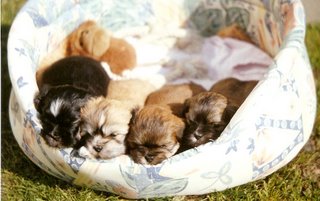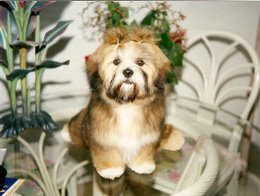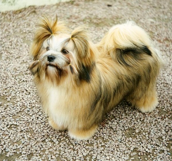 Je n’ai jamais gardé sur cette lignée, qui ne correspond pas complètement à mon type de Lhassa. Elle a toujours été la copine des Terre-Neuves, elle a maintenant neuf ans.